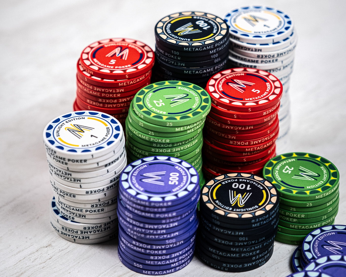Inspired by the sun's rays, SUNLIGHT EDITION chips showcase semi-circle patterns that capture the incandescence of a rising sun.